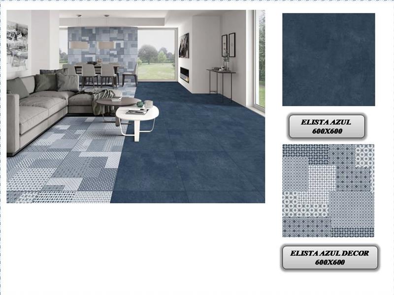 The Elista Azul and Elista Azul Decor 600x600 tile is a vitrified or porcelain tile with a decor finish, primarily featuring blue shades and patterns. It is suitable for both wall and floor applications in various indoor areas such as bathrooms, kitchens, and living rooms. The tile is known for its durability and is designed to enhance the aesthetic of any room with its unique style.