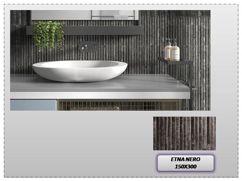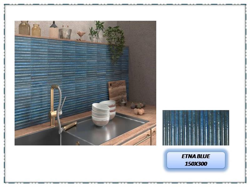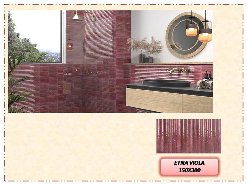 ETNA are 150x300mm wall tiles with a traditional shape and irregular glazing. They feature a vintage, dimensional surface and are available in a variety of colors, including viola, verde, nero, blanco, and blue. These glossy finish tiles are designed for interior wall coverings, creating a decorative element in kitchens or bathrooms. The color and surface variation adds rustic charm and character to any space.