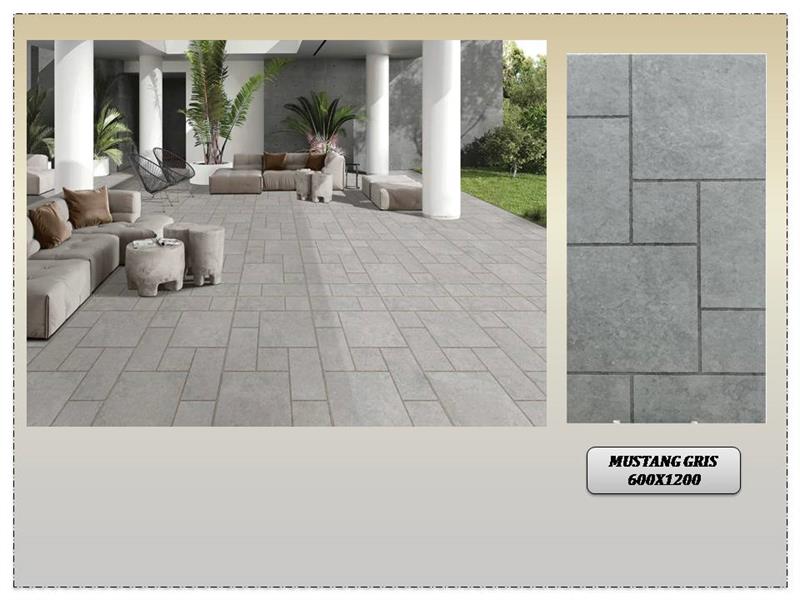 The Mustang Gris 600x1200 mm tile is a durable vitrified or porcelain tile that offers a sophisticated stone look with a matte finish, suitable for both residential and high-traffic commercial areas.Its durable vitrified or porcelain construction ensures longevity, while the natural stone appearance brings both elegance and practicality to your interiors, complementing contemporary and classic decor alike.Matte (Antiskid available on some variants) / Stone Finish Suitable for high-traffic areas, including living rooms, bathrooms, bedrooms, and commercial spaces.