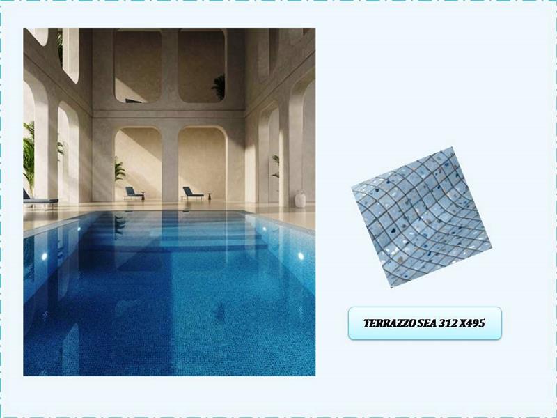 TERRAZZO SEA 312X495" refers to a specific mosaic tile product by the manufacturer Ezarri.